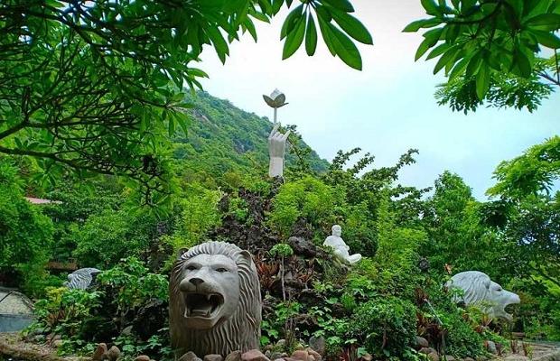 - Chùa Quán Thế Âm: Tọa lạc dưới chân núi Lớn, trong chùa có pho tượng Phật Bà Quan Âm cao 16m tay cầm bình Cam Lồ, du khách đứng trên tòa sen và hướng nhìn ra biển cả.